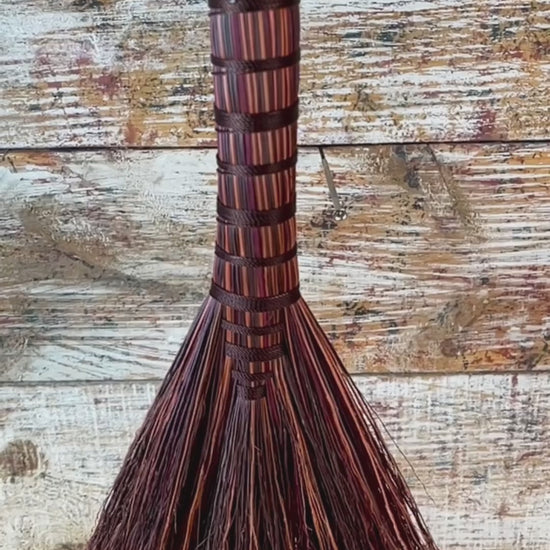 Sienna Flame colorway: brown, wine red, and orange broomcorn