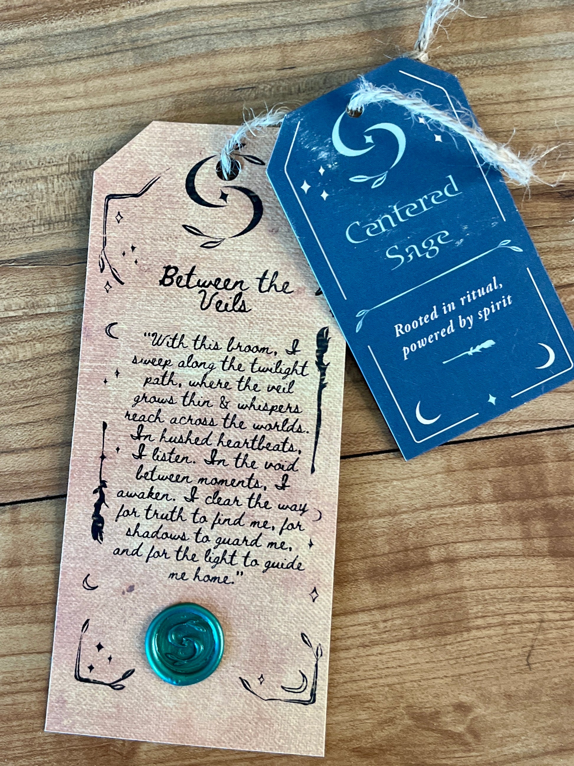 “With this broom, I sweep along the twilight path where the veil grows thin and whispers reach across the worlds.
