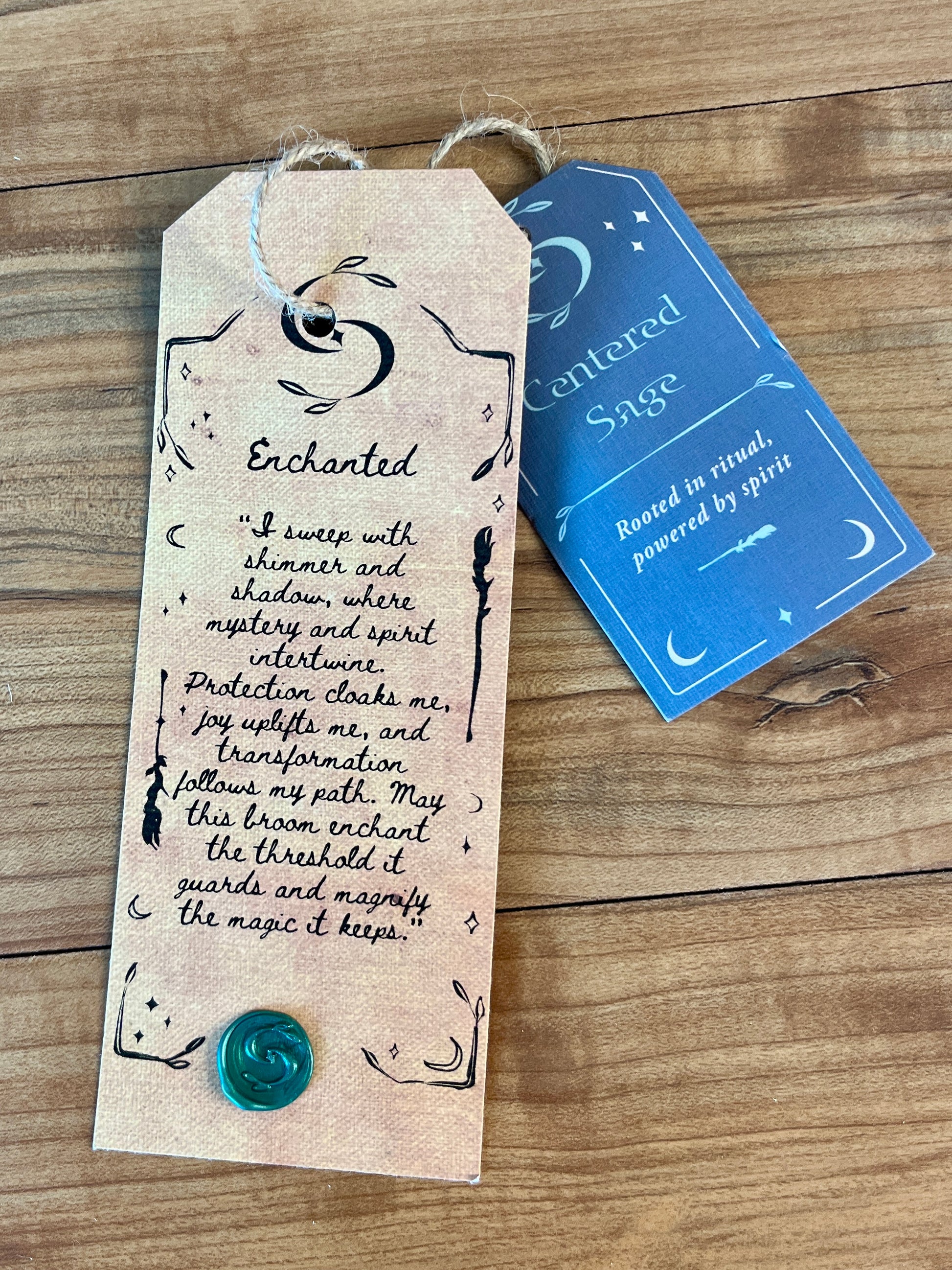 “I sweep with shimmer and shadow, where mystery and spirit intertwine. Protection cloaks me, joy uplifts me, and transformation follows my path. May this broom enchant the threshold it guards and magnify the magic it keeps.”