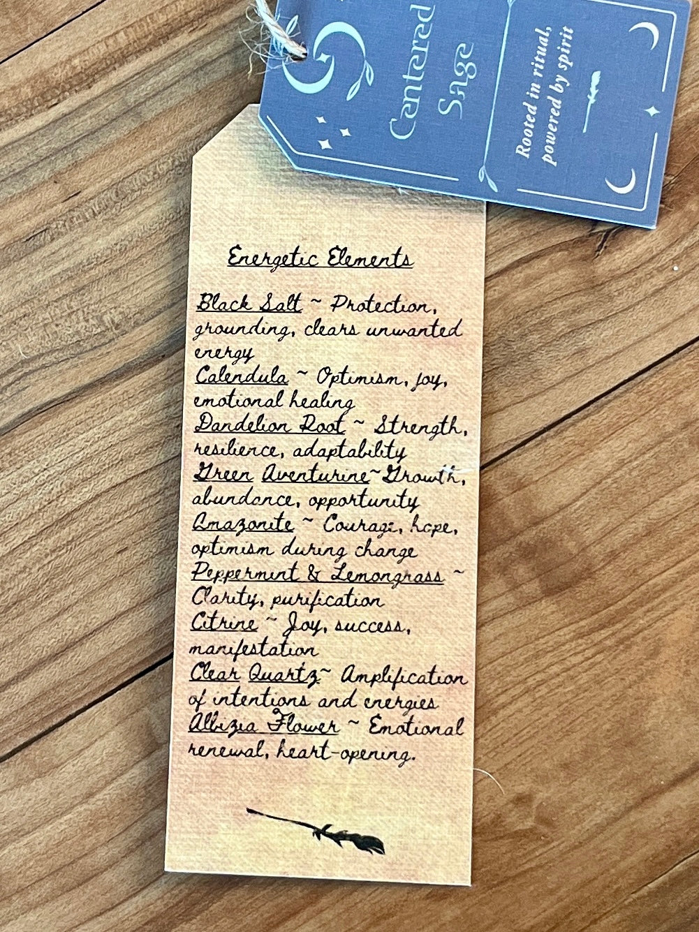 Photos of the intention tag (front and back) are included in the gallery so you can read the full written intention and energetic elements before purchase.