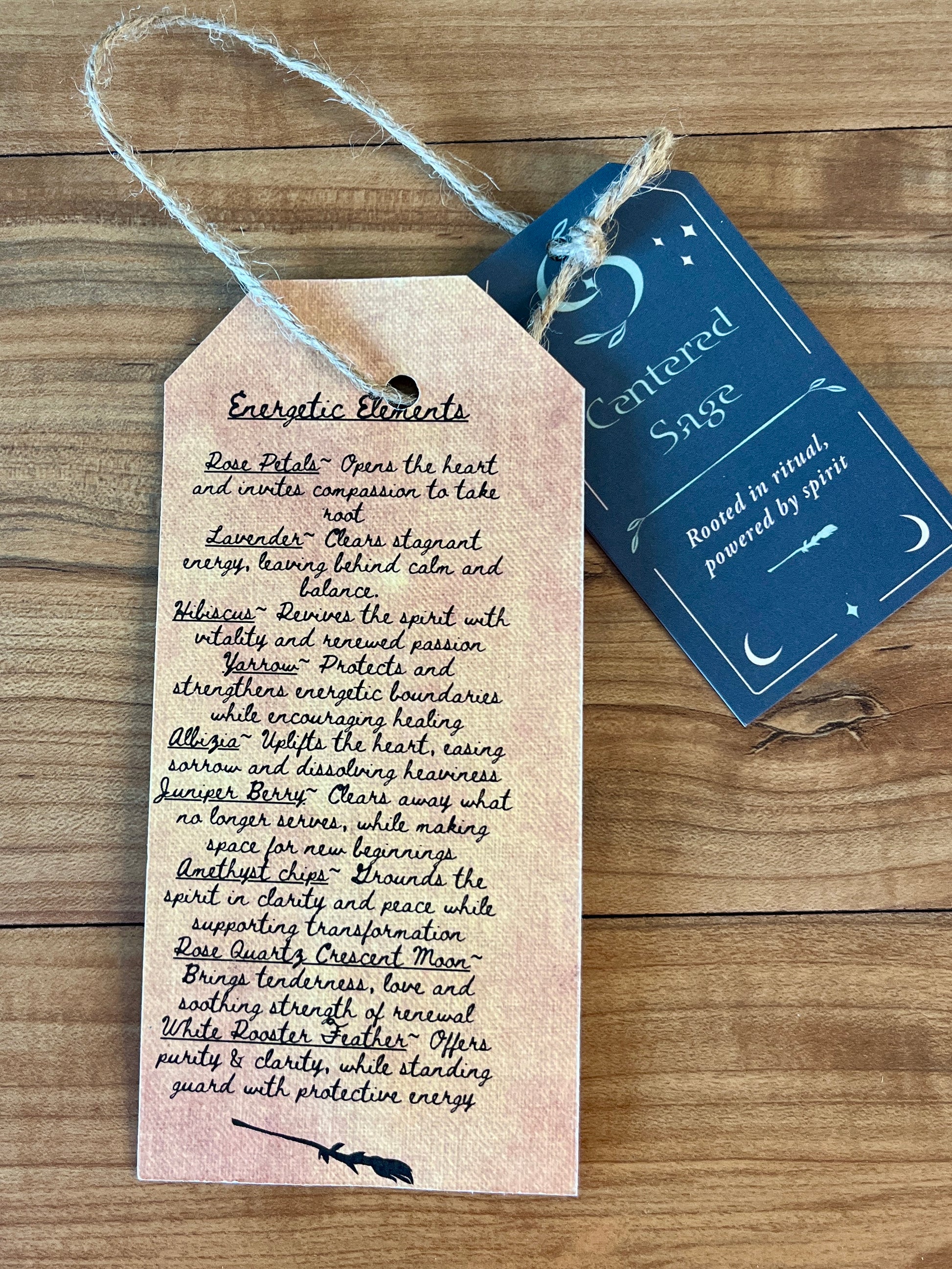 Photos of the intention tag (front and back) are included in the gallery so you can read the full written intention and energetic elements before purchase.