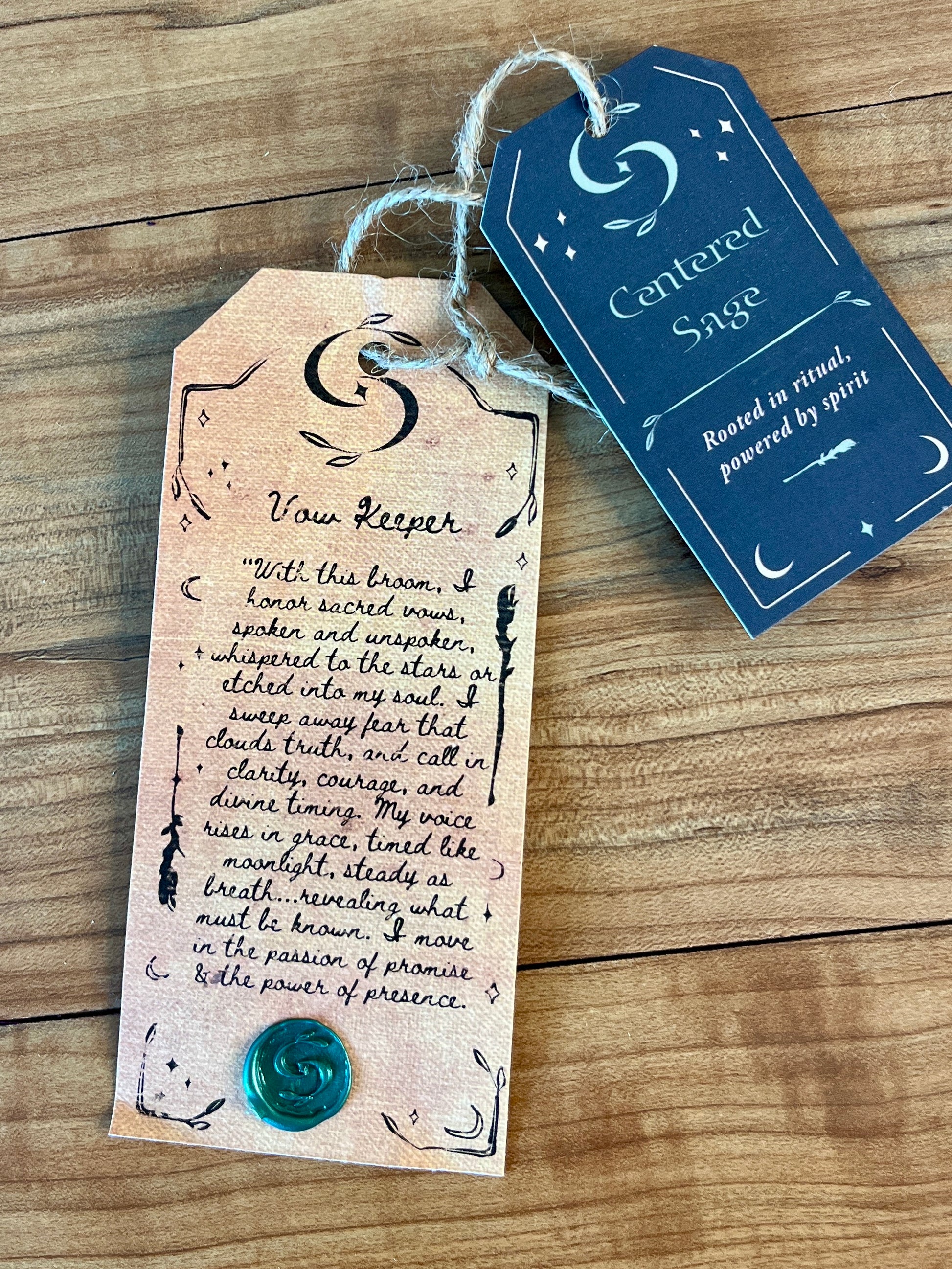 “With this broom I honor sacred vows, spoken and unspoken, whispered to the stars or etched into my soul. I sweep away fear that clouds truth and call in courage and divine timing. My voice rises in grace, timed like moonlight, steady as breath, revealing what must be known. I move in the passion of promise and the power of presence.”