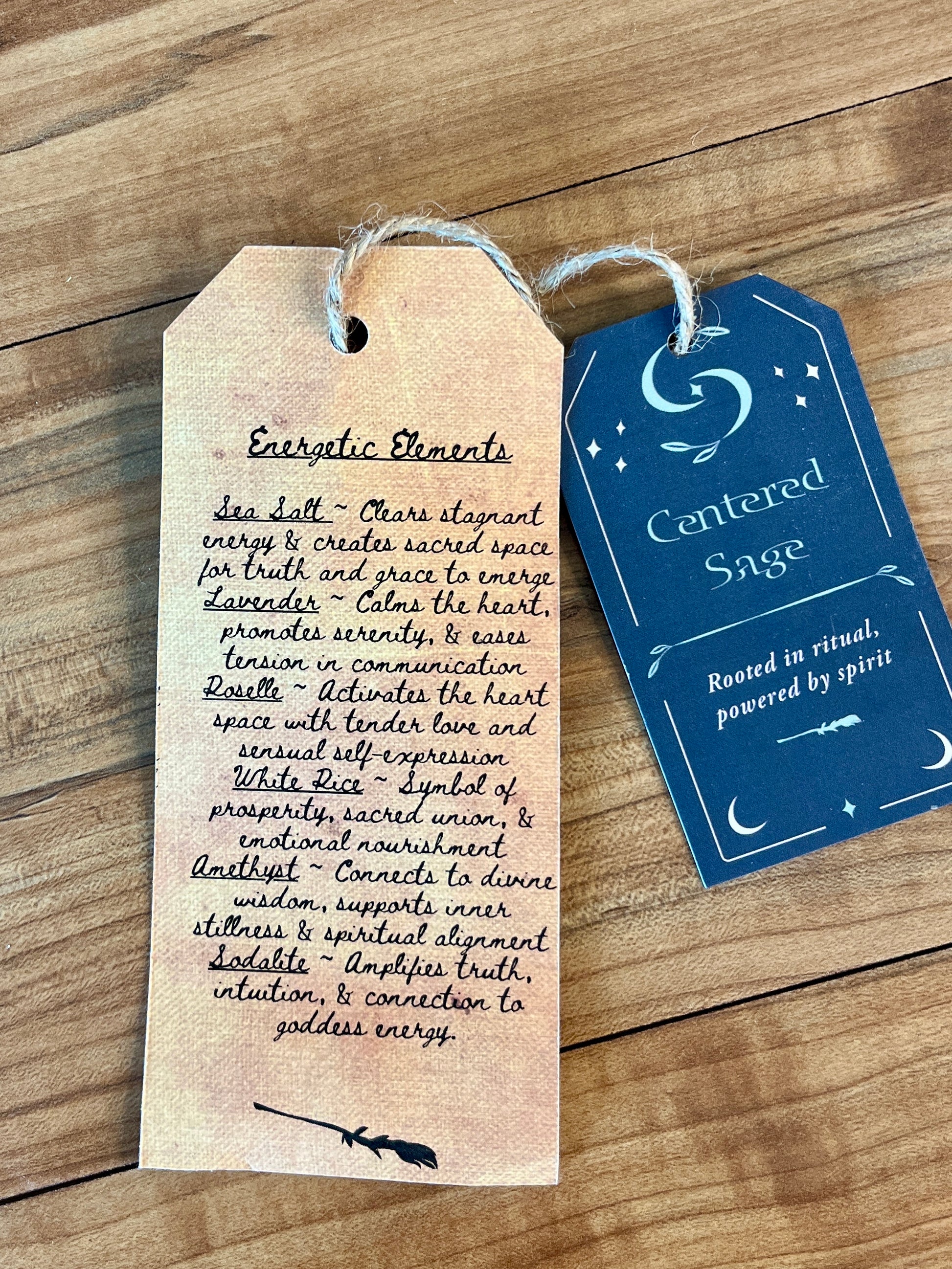 Photos of the intention tag (front and back) are included in the gallery so you can read the full written intention and energetic elements before purchase.